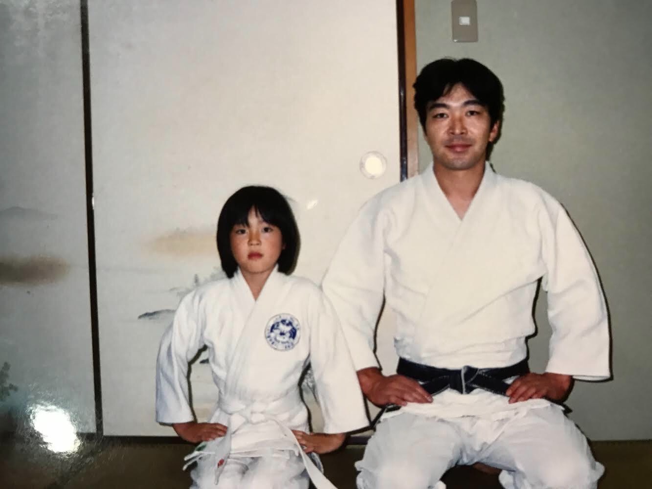 柔道を始めたころの角田さん(左)とお父さん(右)